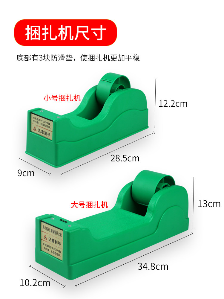 One small strapping machine One large strapping machine (about 55 meters with red strapping) 10 (about 55 m with green strapping) 10 about 55 m with purple strapping
