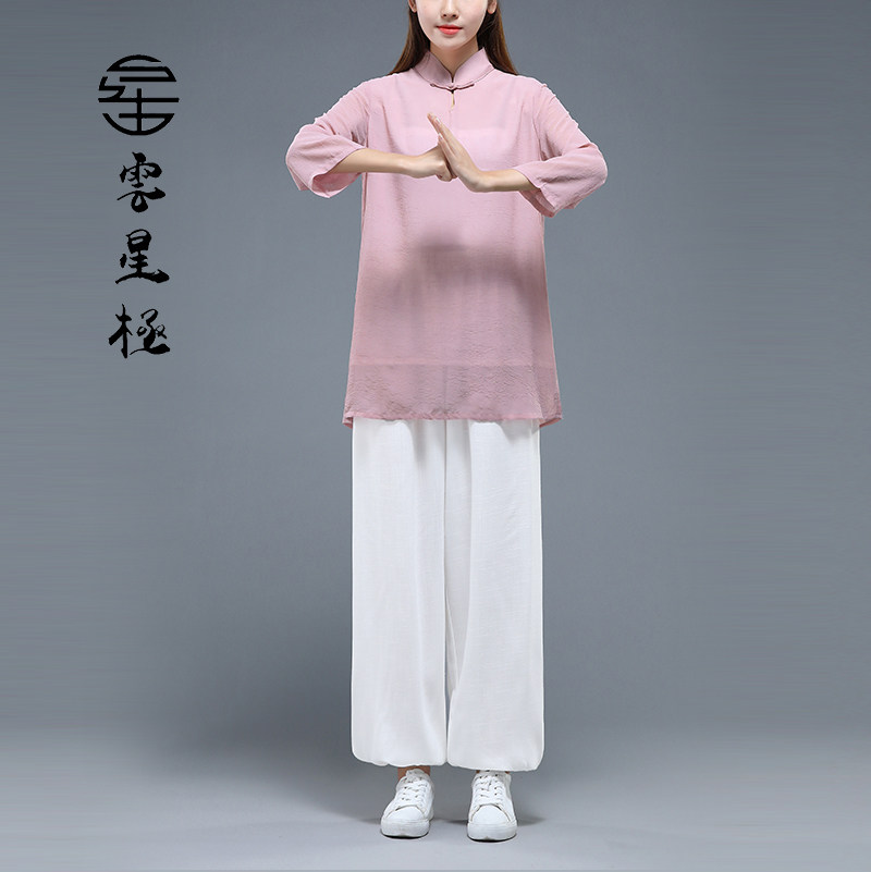 Taiji-yi-yu female fashion competition performing yoga home-yarn breathable new martial arts short-sleeved spring and summer coat suit