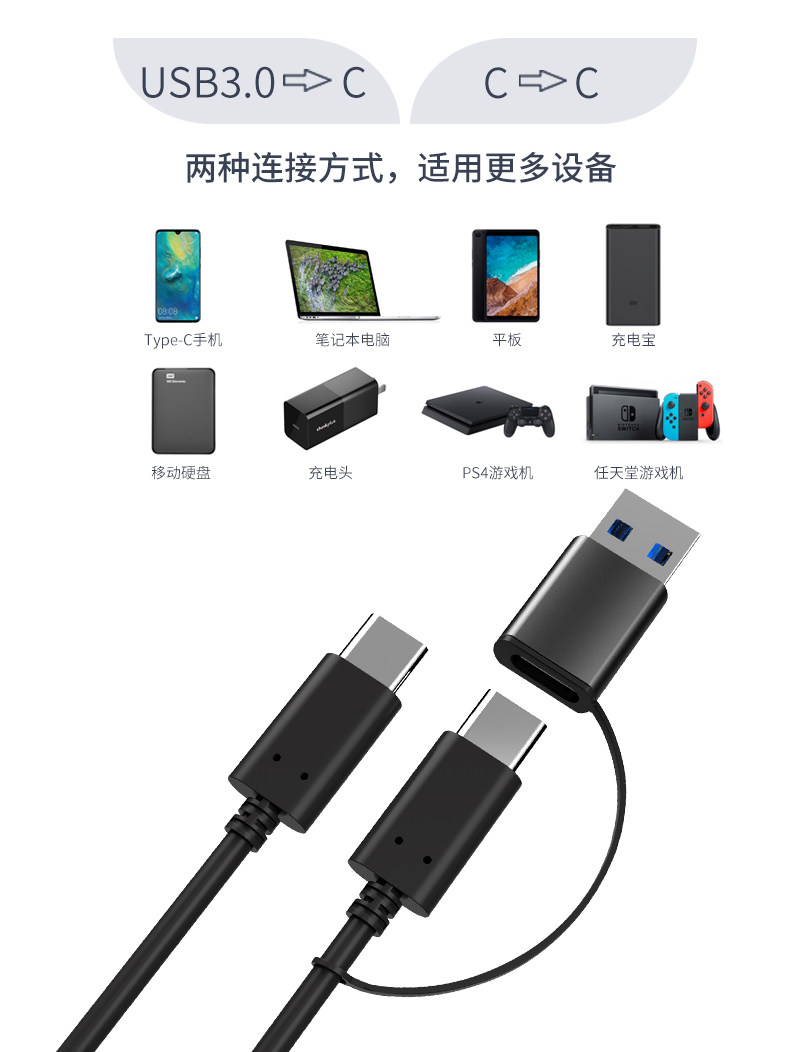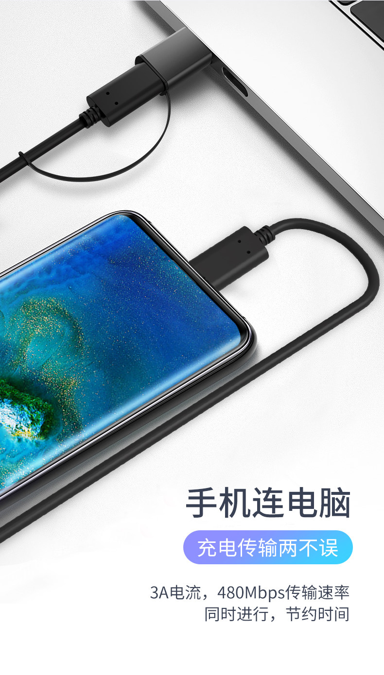 Type-C to C one-line double-head transfer usb mobile phone notebook pro 3A 60W two-in-one fast charging data cable