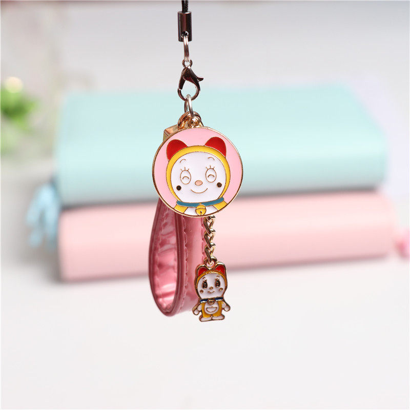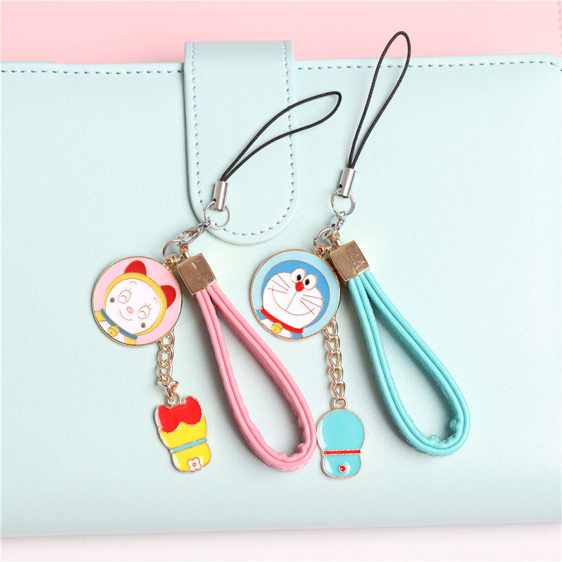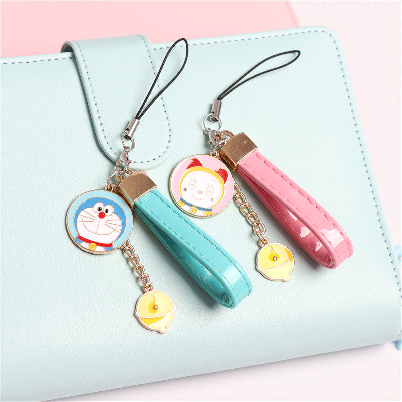 Cartoon machine cat Doraemon A dream biker with a small pu leather rope mobile phone protective shell pendant pendant male and female student couple ornaments