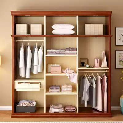 Solid wood wardrobe modern minimalist wardrobe master bedroom home bedroom wardrobe economy whole with door against wall large wardrobe