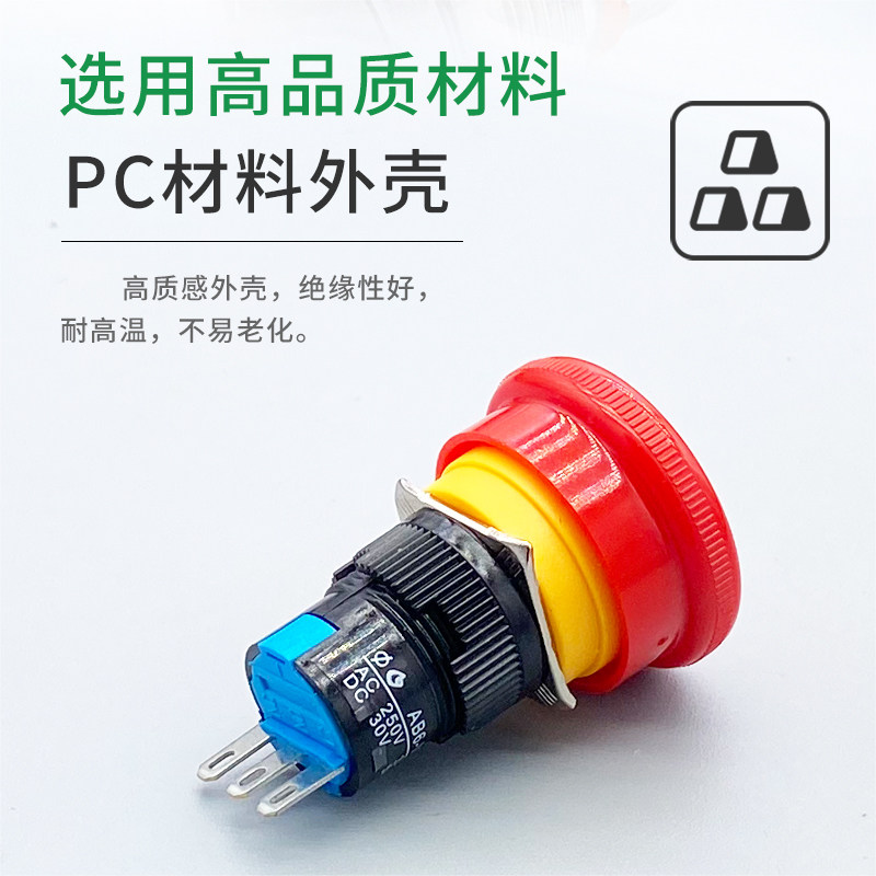 16m emergency stop button (open one usual)m 16mm emergency stop button(2 normally closed) 22mm short emergency stop button(always open one time) 22mm short stop button