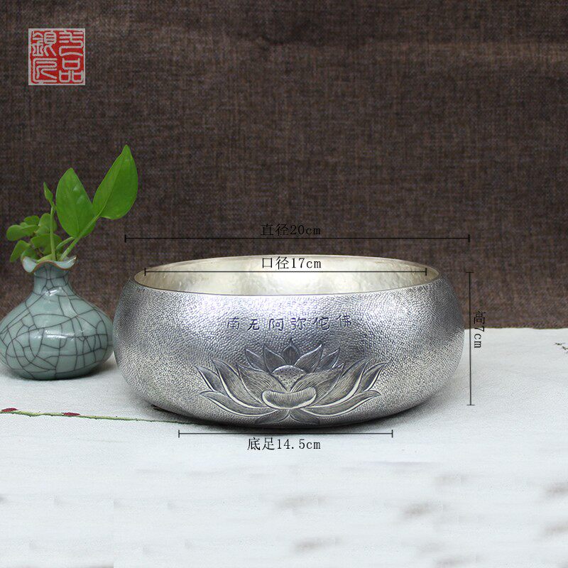 1st grade silversmith foot silver bowl 999 sterling silver handmade antique lotus Amitabha figure tea maker tea wash big soup bowl