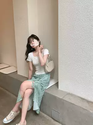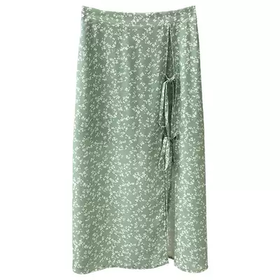 77store slit lace-up elegant skirt women 2021 summer new high waist slim long version of A- line dress