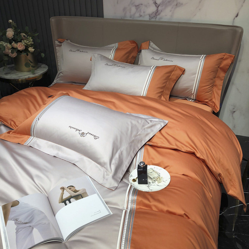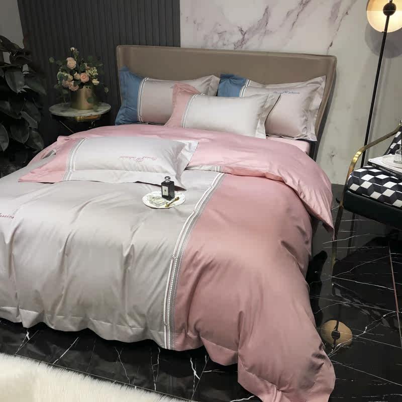 Light extravagant embroidered pure cotton 100 long suede cotton parquet with four sets of American all-cotton linen cover 1 8 bed bedding