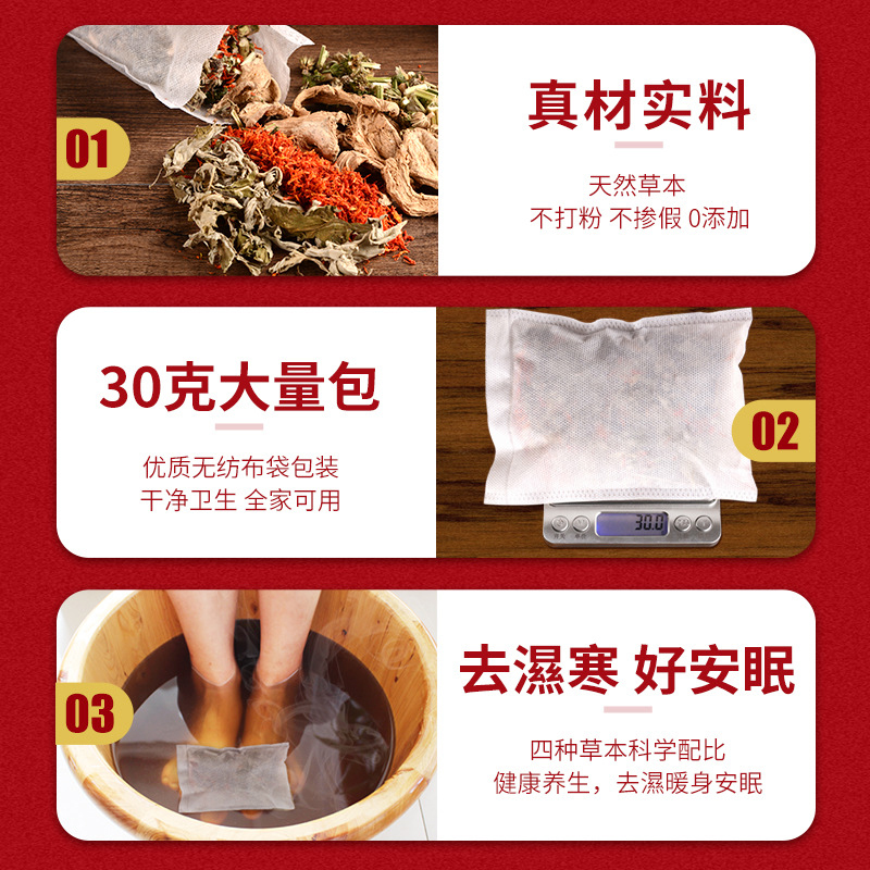 Nanjing Tongrentang flagship store wormwood, saffron, old ginger, traditional Chinese medicine, foot soaking medicine bag, beriberi moisture, mugwort leaf foot bath bag