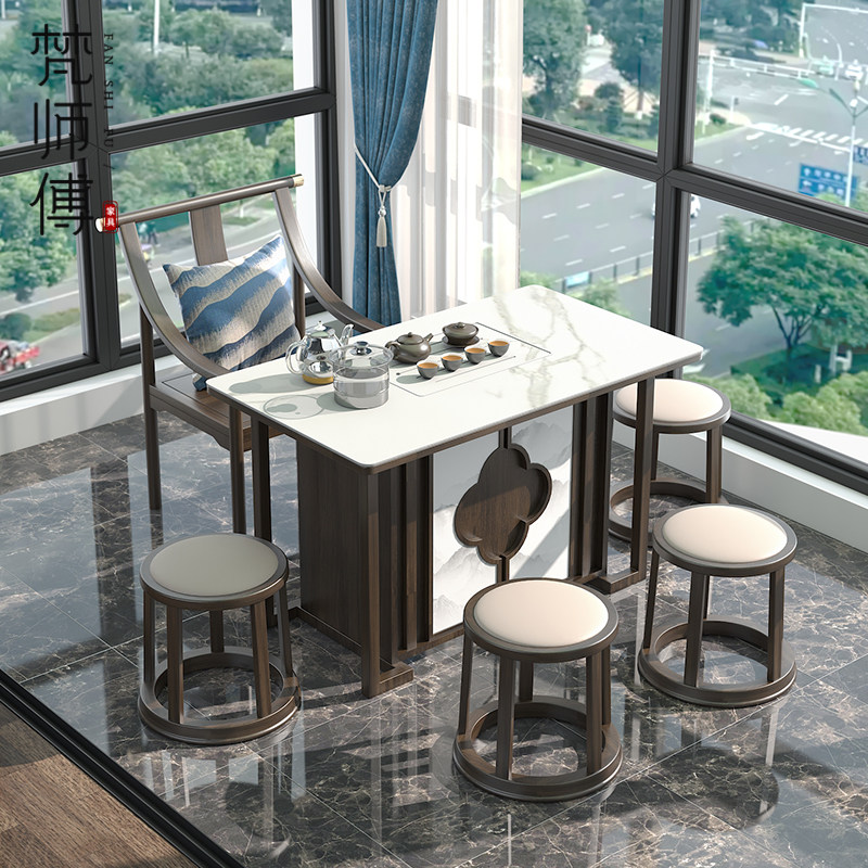 New Chinese tea table tea table Set of tea sets Zen Balcony Kung Fu Tea NTU Board Rockboard Solid Wood Tea Table And Chairs Combination