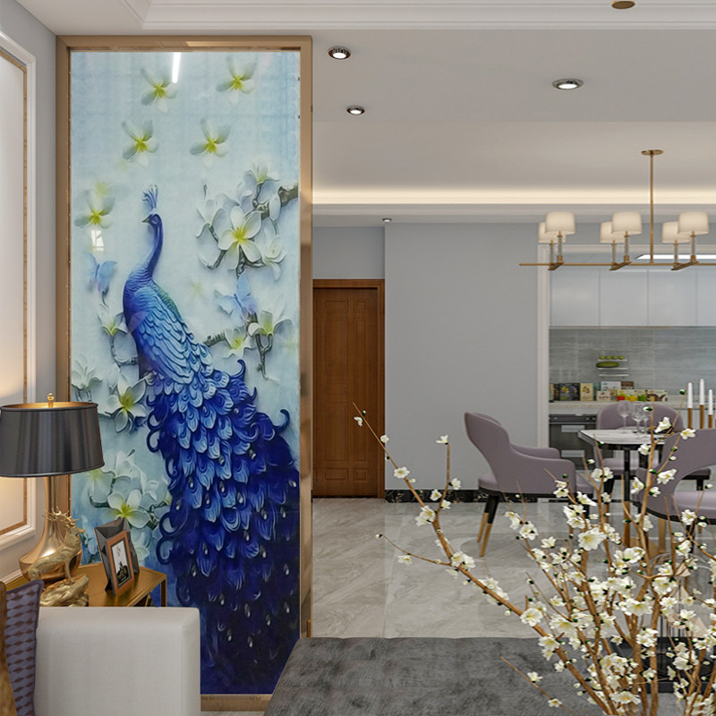 Long Iridescent Glass Screen Partition New Chinese Modern Minimalist Light Extravagant small family Living room Screen Double-sided Entry Genguan
