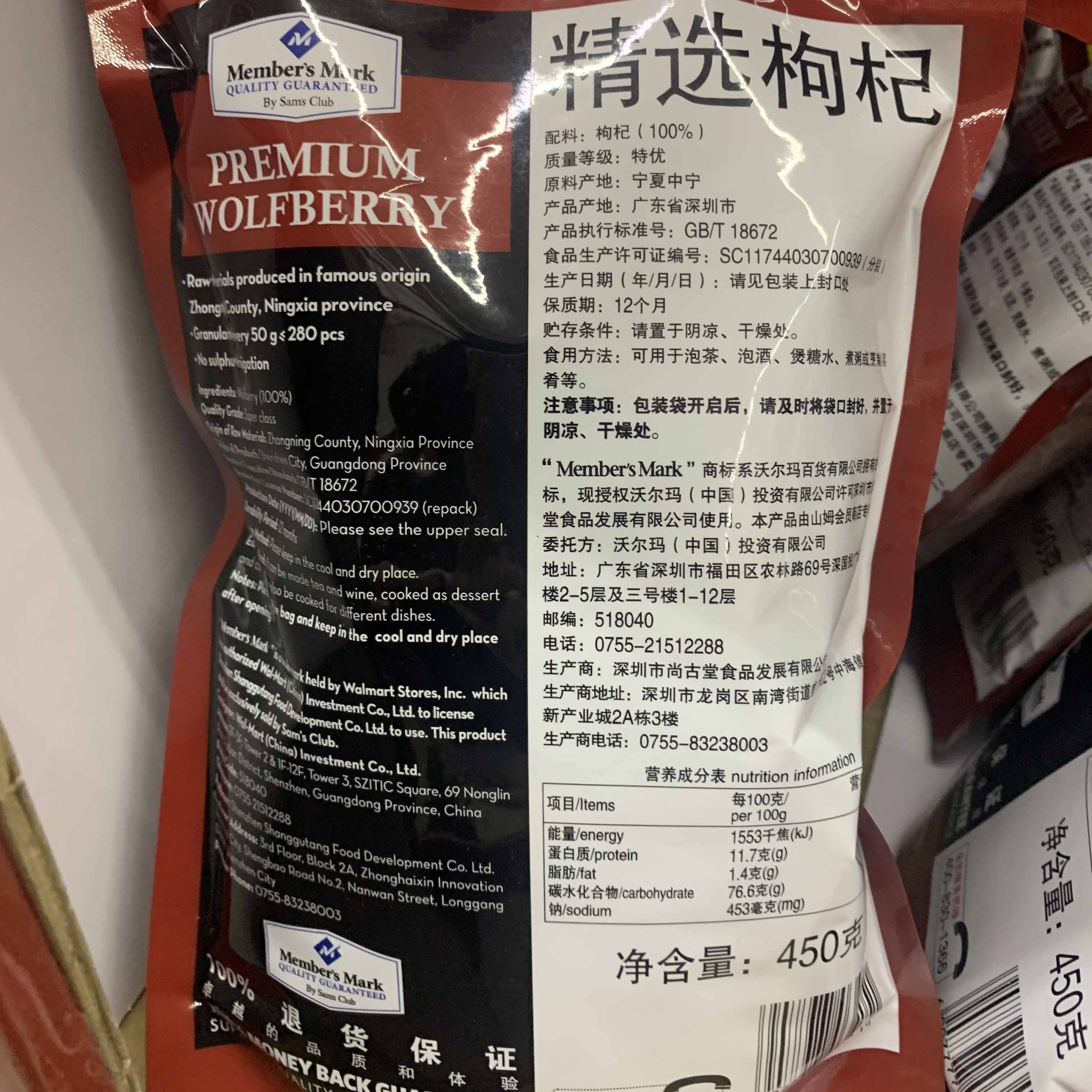 Sam's selection of wolfberry premium Ningxia Zhongning big fruit about 280 grains per 50g sulfur-free fumigated tea