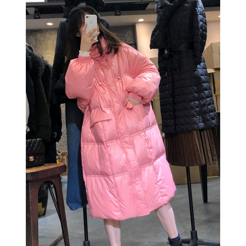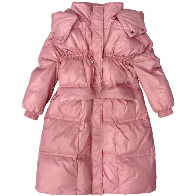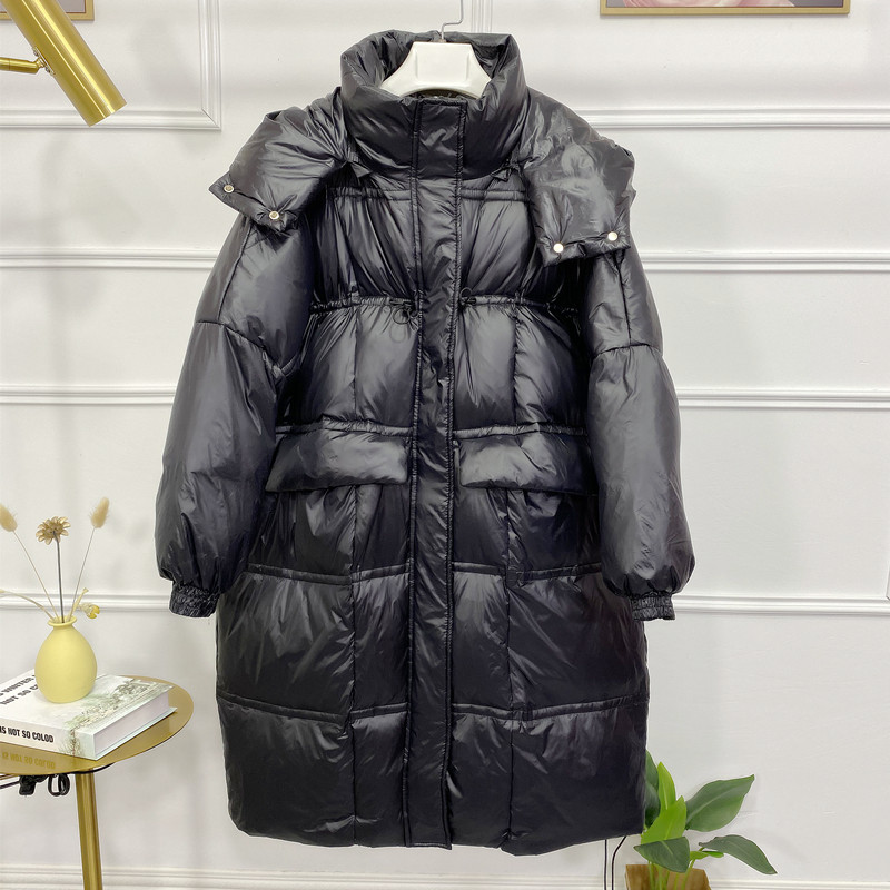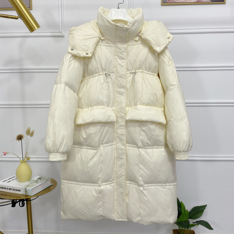 Anti-seasonal clearance down jacket women's middle and long white duck down new hooded bread clothing fashion Korean version loose coat tide