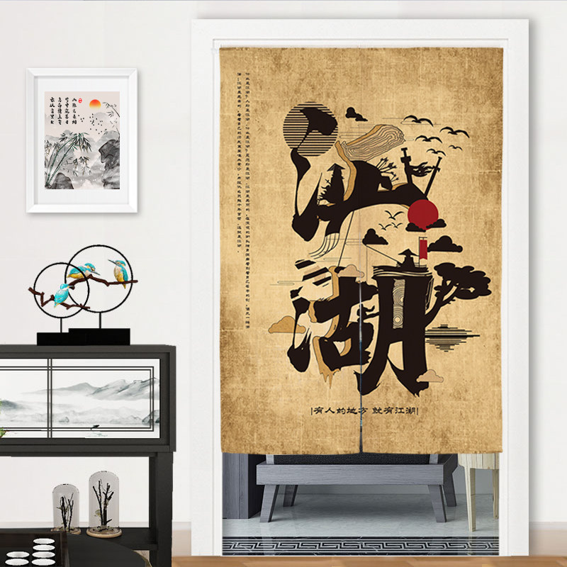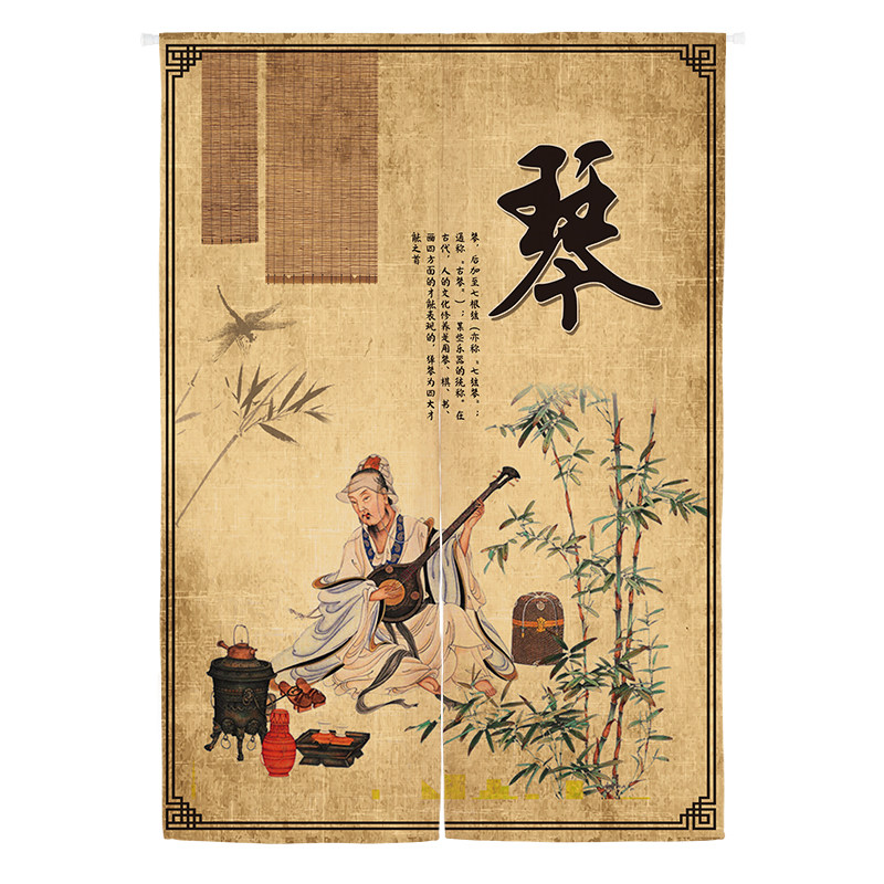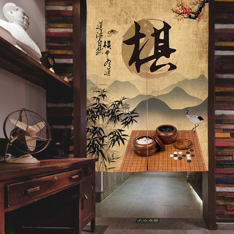 Chinese chess painting and calligraphy country wind door curtain cloth art bedroom Xuanguan partition window training course hanging curtain folk decoration semi-curtain cloth curtain