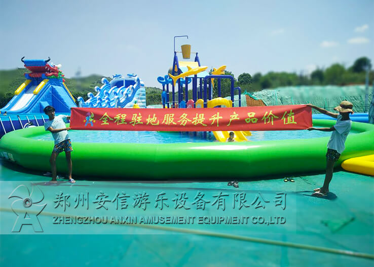 Large outdoor mobile water park equipment manufacturers bracket swimming pool inflatable swimming pool water slide water level