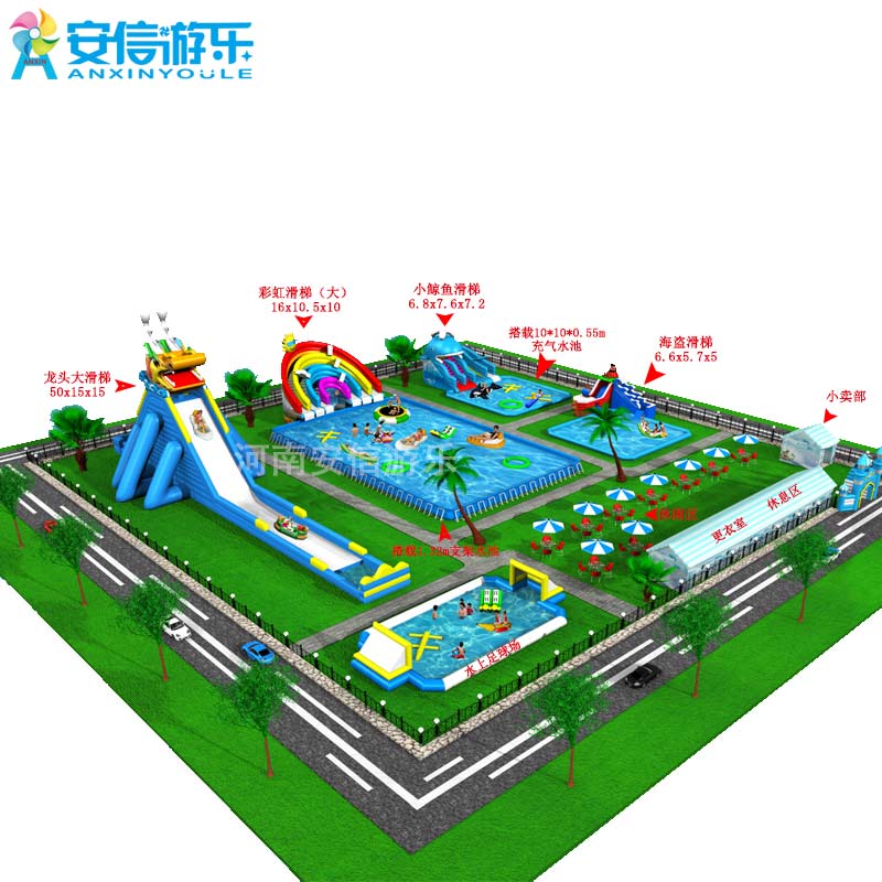 The overall design of the inflatable water slide site of the bracket pool water level inflatable swimming pool