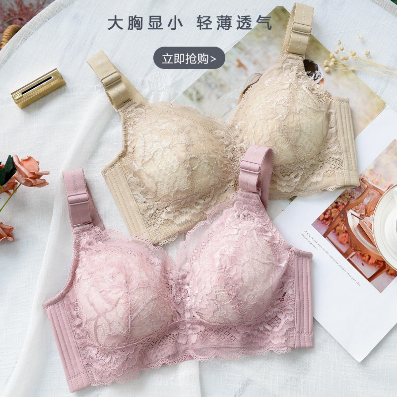Happy Fox Underwear Big Breast Show Small Bra Thin Section Breast Reduction Anti-Sagging No Steel Ring Full Cup DE Large Cup