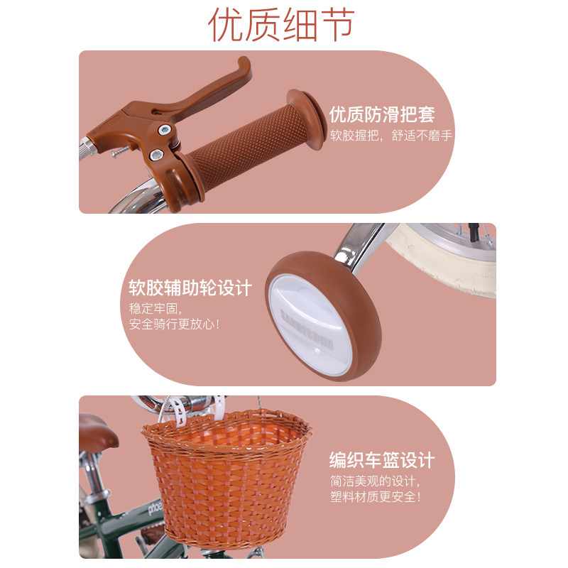14-inch princess powder (suitable for 3-6 years old height adjustable) 14 inch beige (suitable for 3-6 years old height adjustable) 14 inch vintage green (suitable for 3-6 years old height adjustable) 14 inch glacier blue (suitable for 3-6 years old height adjustable) 14 inch beautiful powder (suitable for 3-6 years old with hanger model) 14 inch rose powder (suitable for 3-6 years old with hanger model) 14 inch lake blue (suitable for 3-6 years old with hanger model) 16 inch princess powder (suitable for 6-9 years old height adjustable) 16 inch beige (suitable for 6-9 years old height adjustable) 16-inch vintage green (suitable for 6-9 years old height adjustable) 16 inch glacier blue (suitable for 6-9 years old height adjustable) 16 inch beautiful powder (suitable for 6-9 years old with hanger model) 16 inch rose powder (suitable for 6-9 years old with hanger model) 16 inch lake water blue (suitable for 6-9 years old with hanger model) 18 inch princess powder (suitable for 8 years old with height adjustable) 18 inch vintage green (suitable for 8 years old height adjustable) 18 inch beige (suitable for 8 years old height adjustable) 18 inch glacier blue (suitable for 8 years old height adjustable) 18 inch beautiful powder ( Suitable for 8 years old with hanger) 18 inch rose powder (suitable for 8 years old with hanger style) 18 inch lake water blue (suitable for 8 years old with hanger style) 20 inch princess powder (suitable for 8 years old with height adjustable) 20 inch glacier blue (suitable for 8 years old height adjustable) 14 inch blue (no gift no warranty)