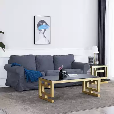 Modern Chinese rock plate coffee table Simple light luxury square balcony side household combination coffee table side wrought iron gold