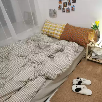 ins blogger with mix and match card its plaid cotton wash cotton four-piece cotton sheets quilt cover bedding