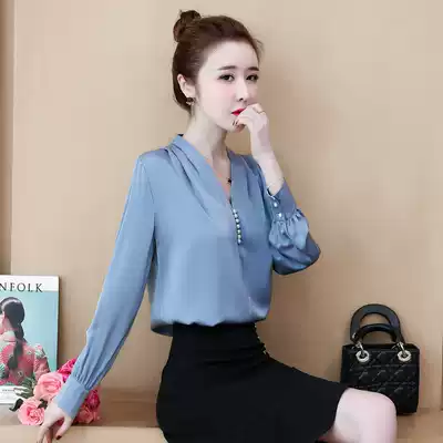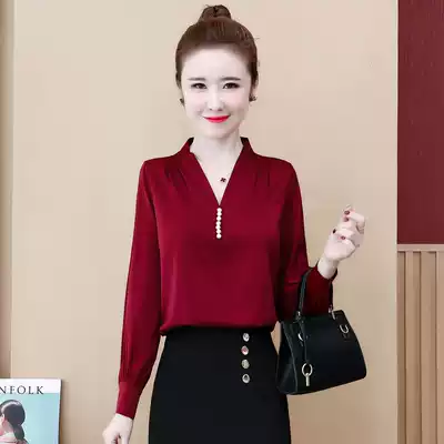 Early autumn chiffon shirt women long sleeve 2021 new autumn loose slim light mature pearl buckle V collar shirt Women