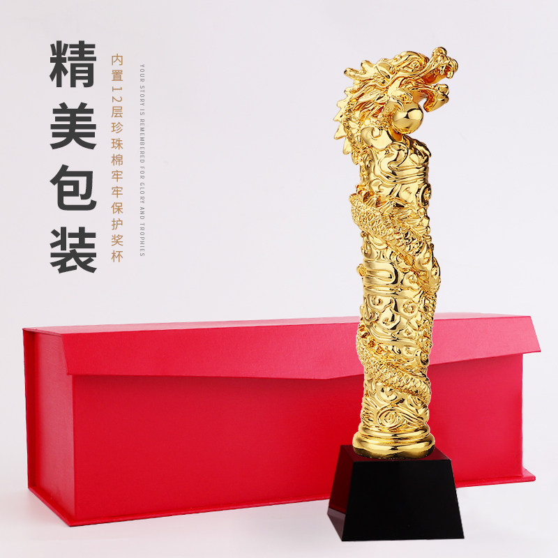 Dragon Purchase Column Gold Plated Trophy Creative to do Annual Meeting Corporate employees Awards Gilded trophy Lettering Trophy Custom