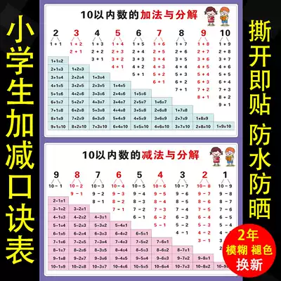 Addition and subtraction formula table within 20 Wall chart Children's first grade mathematics decomposition addition and subtraction formula table within 10 Wall chart Children's first grade mathematics decomposition addition and subtraction formula table Within 10 Wall chart