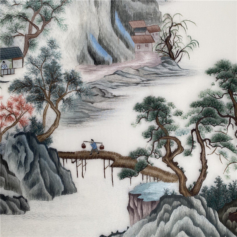 Suzhou Embroidery Suzhou Embroidery Finished Hanging Painting Entrance Corridor Pure Handmade Gift 1--4 Silk Boutique Chinese Decorative Landscape