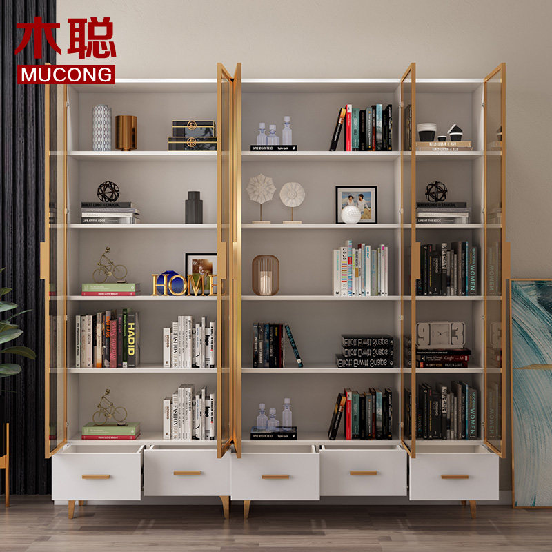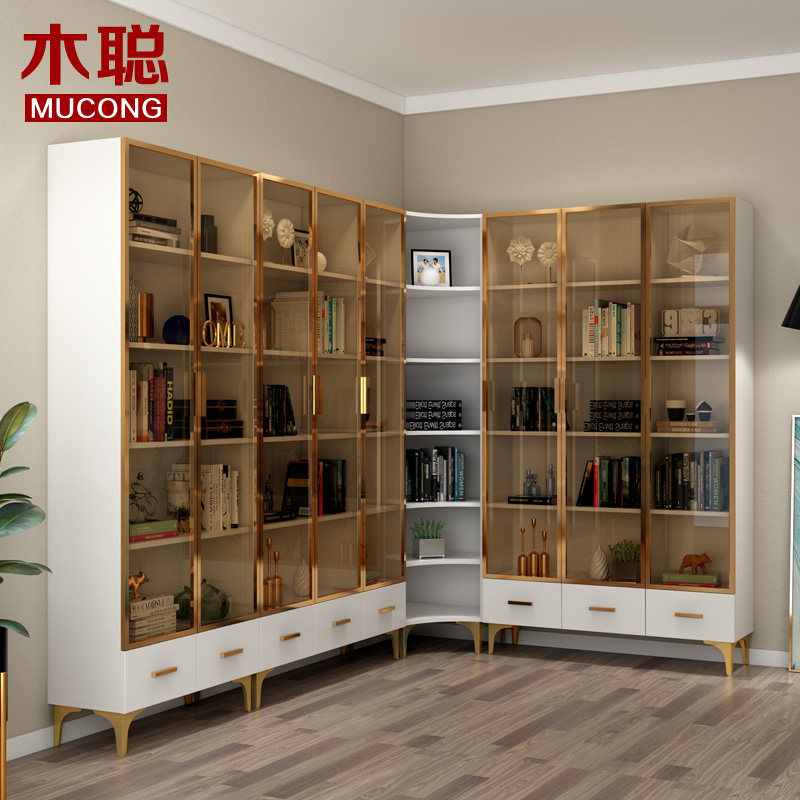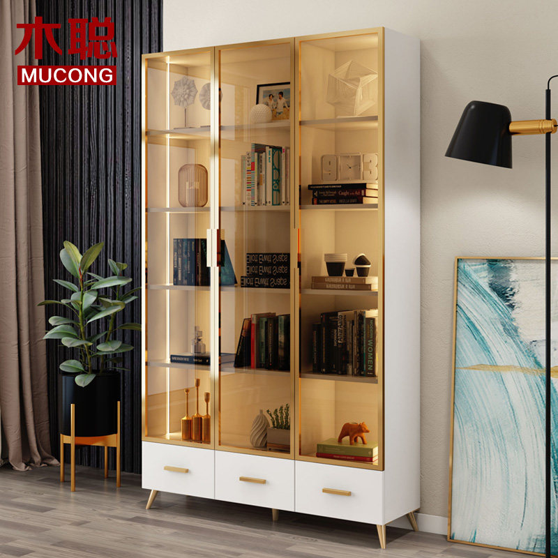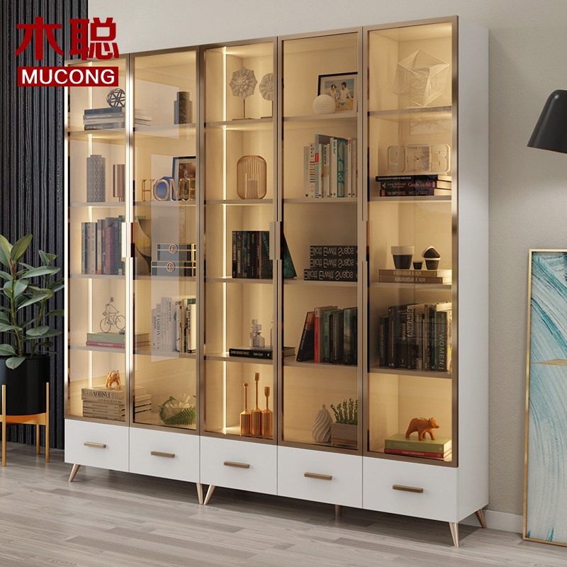 Modern light luxury bookcase bookshelf display cabinet with glass door floor-to-ceiling combination study bookcase solid wood can be customized