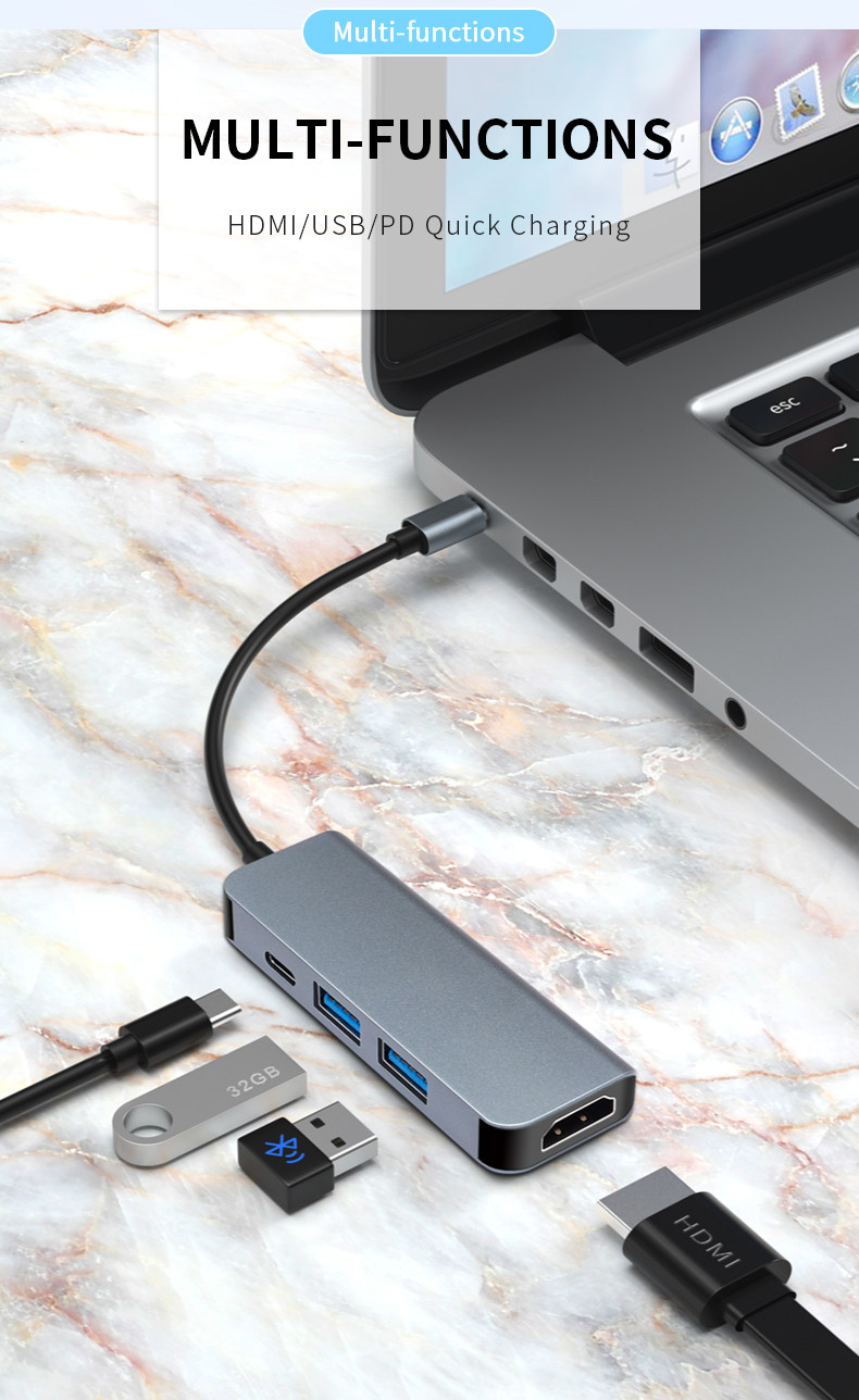 Type-C TO HDM USB Hub Adapter to TF SD Card Reading 5 in 1