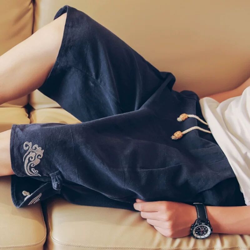 China Wind Cotton Linen Shorts Male summer 50% Horse Pants Tide linen Sports Loose 70% Beach 50% Pants