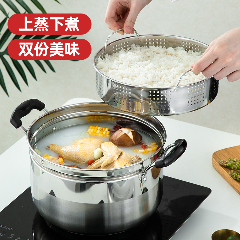 Small Steam Pan Layer 1 Single Layer Household Steam Electric Boiler Steam Cage Stainless Steel Soup Riser and Dual-use Daily Style Mini 2 persons