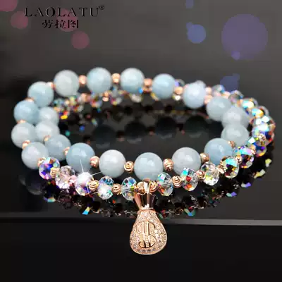 Laura Tu Crystal hand female ins niche design Sea Blue Silver Korean simple personality double-layer bracelet