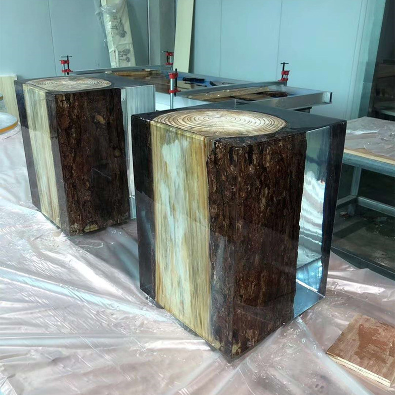 Clothing Shop Shop Window Decoration Flowing Water Taichung Island Display Platinum Crystal Resin Transparent Creative Pendulum Solid Wood Mound Pendulum Table