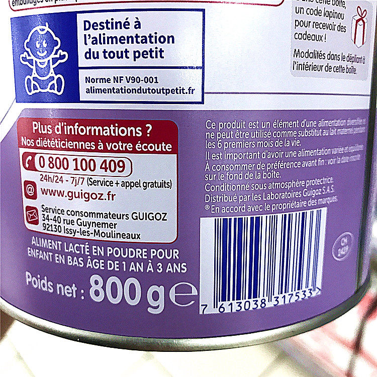 Guigoz 3-stage near-breast milk powder 800g French direct mail from 6 cans, including tax 1-3 years old