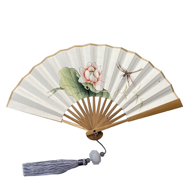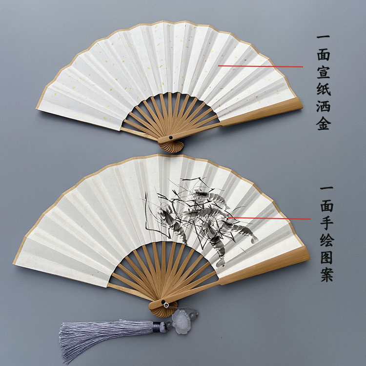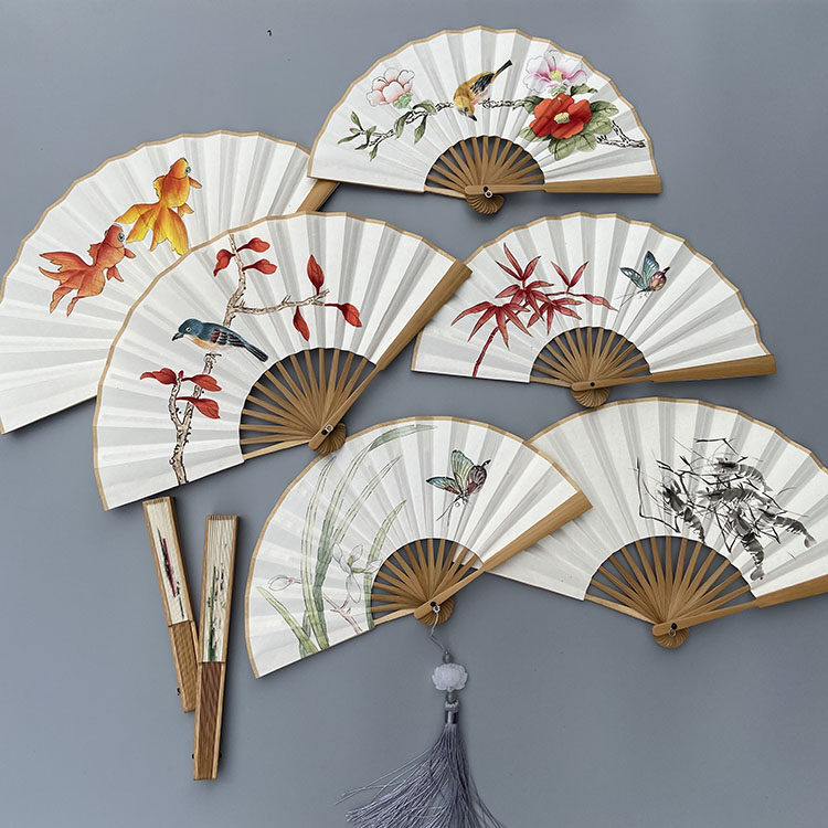 Wenwan folding fan 456 inches handmade water mill Yuzhu mini portable Sugong hand-painted fan boy retro send hanging ears