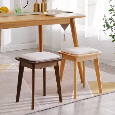 Solid Wood makeup stool 43cm high leather home bedroom makeup soft bag dressing table stool Nordic makeup chair