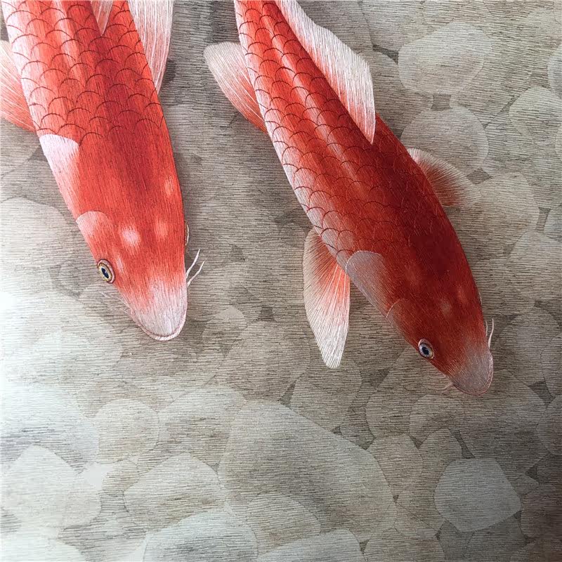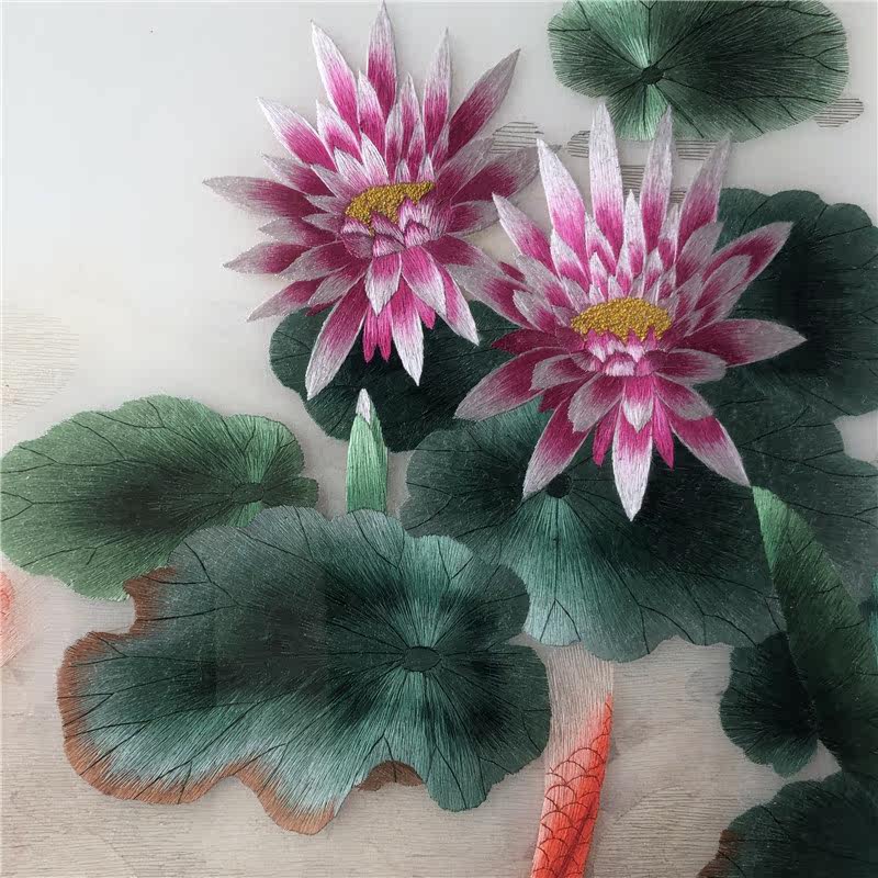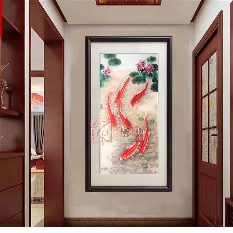 Suzhou embroidery Suzhou embroidery finished hanging paintings 1--4 silk boutique handmade living room porch Chinese decoration carp lotus