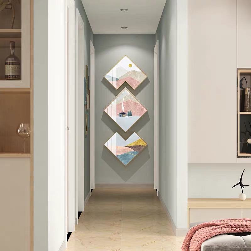 Nordic modern minimalist in the family of the family Xuan Guan Decorative Painting Light Extravagant Atmosphere Fresco Aisle Hallway Crystal Porcelain Painting Creative Hanging