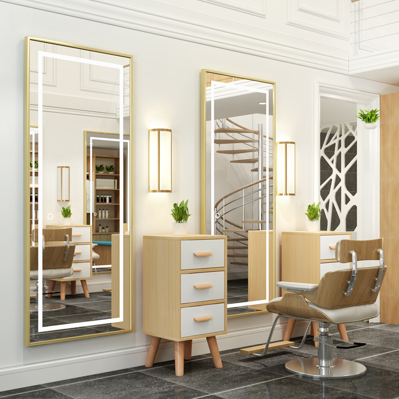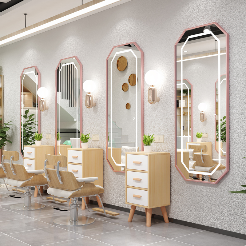 Barber shop mirror network red wall mirror gallery special aluminum alloy with lamp LED hairdresser cabinet