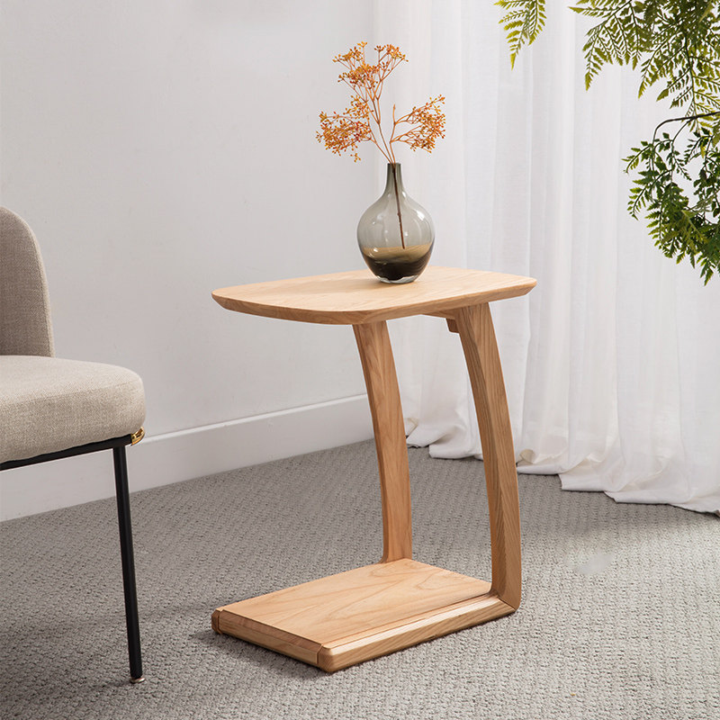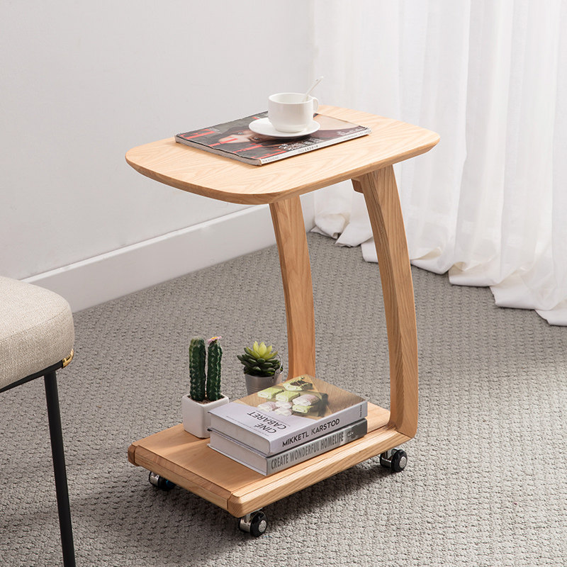 Solid wood side table sofa log corner table with wheels mobile small coffee table simple modern small table bedroom bedside table