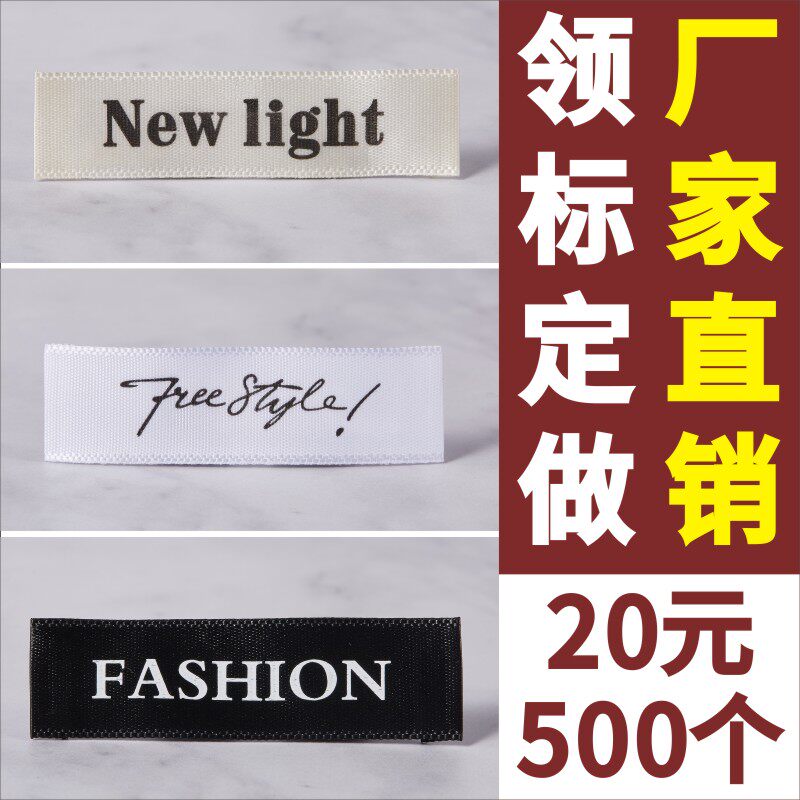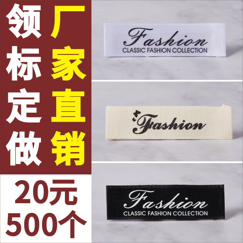 Collar standard custom clothing screen printing washing label Computer woven label printing label Clothing label tag trademark wooden shuttle machine cloth label custom children's clothing cotton belt Women's clothing logo Collar label design custom
