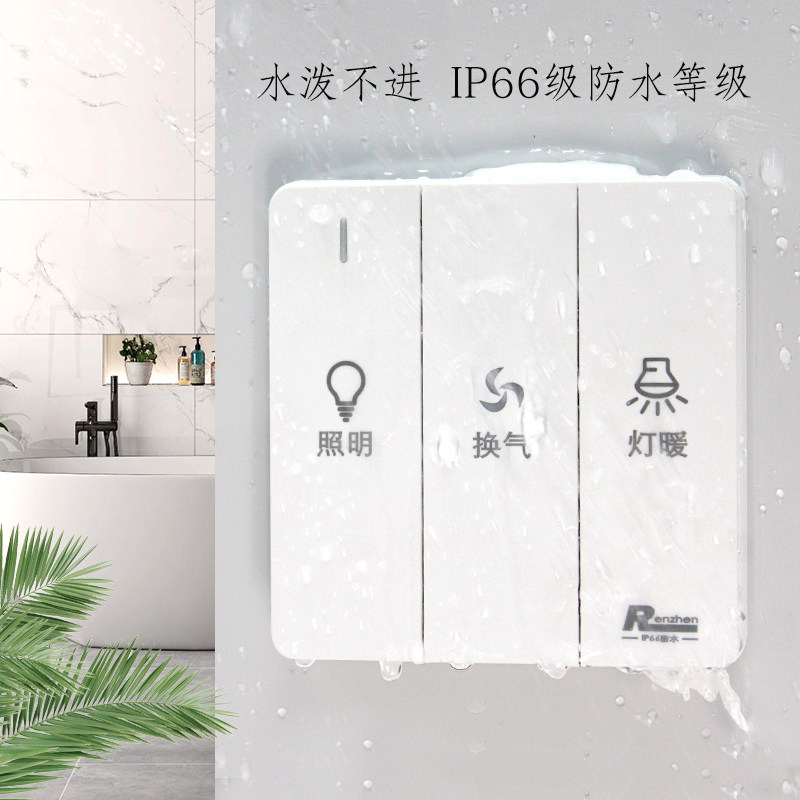 Serious waterproof triple open bath overpower switch IP66 waterproof patent lighting ventilation lamp warm waterproof switch home