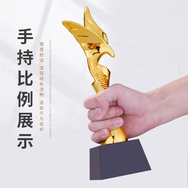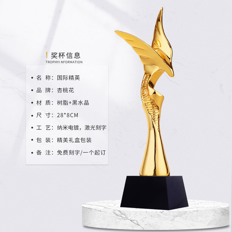 International Elite Gold Plated Trophy set for free design lettering excellence Corporate employees award winning trophies customized