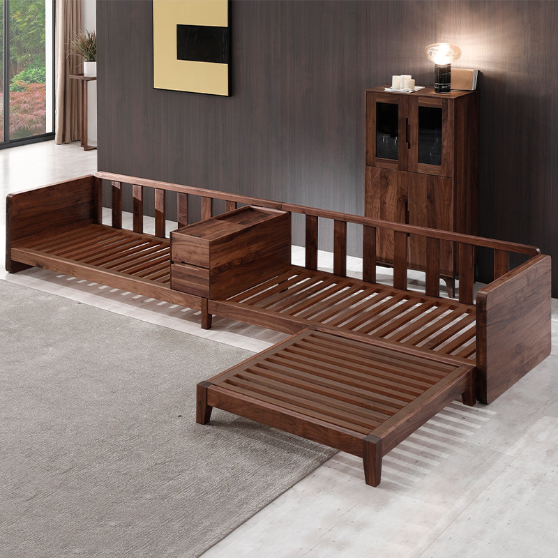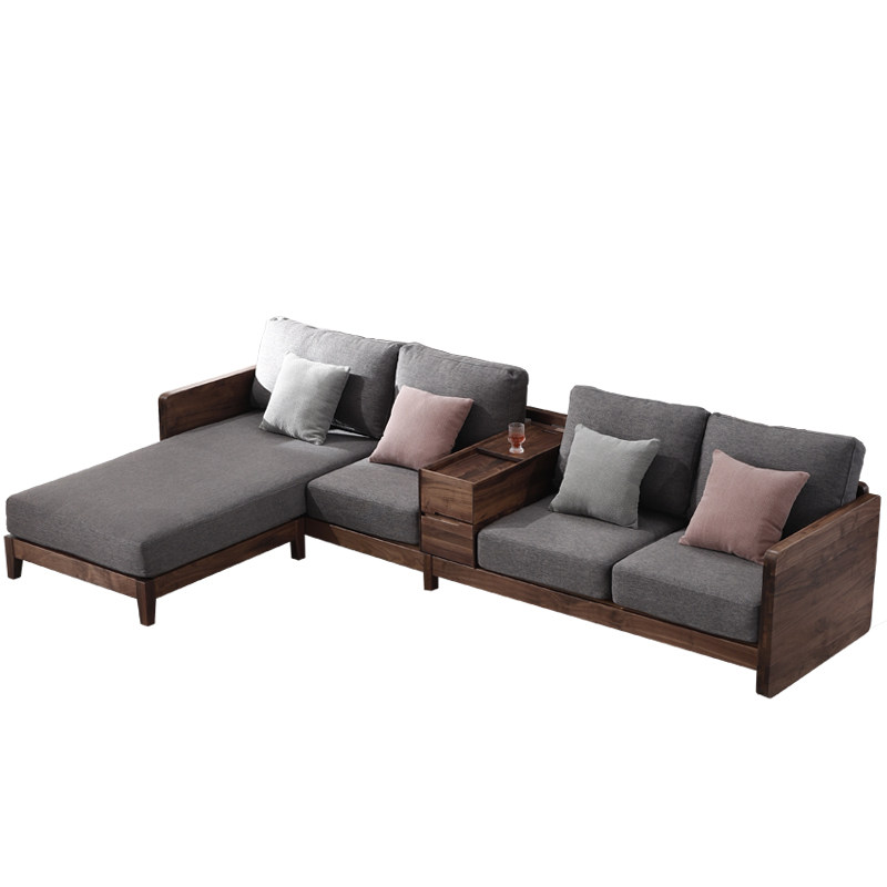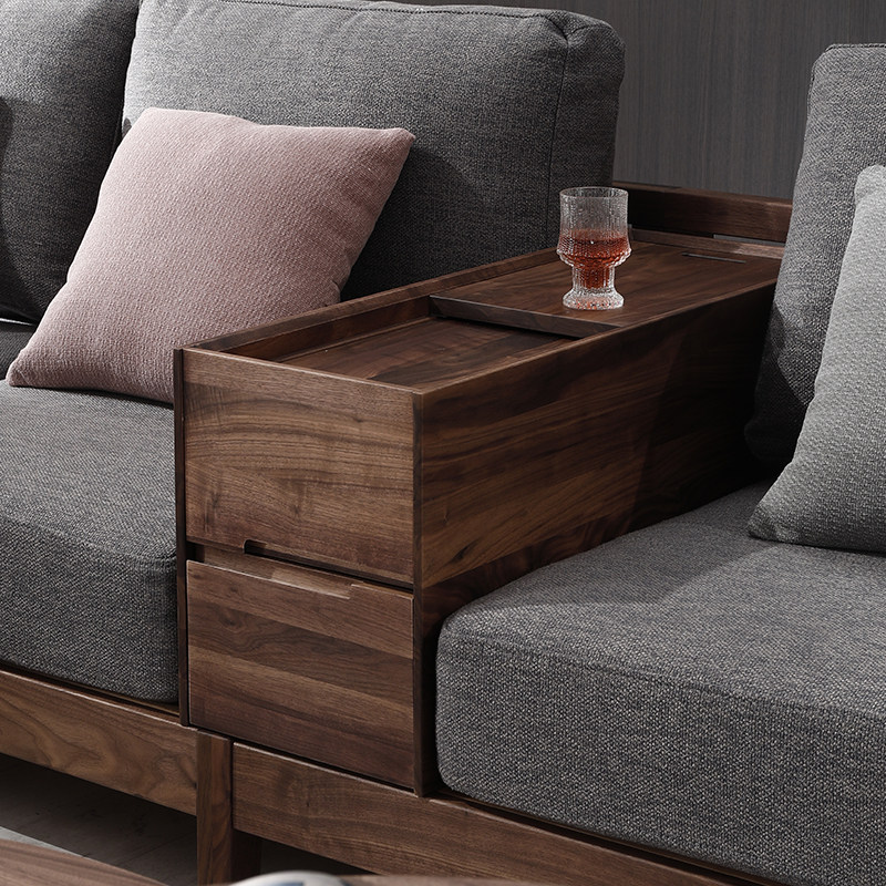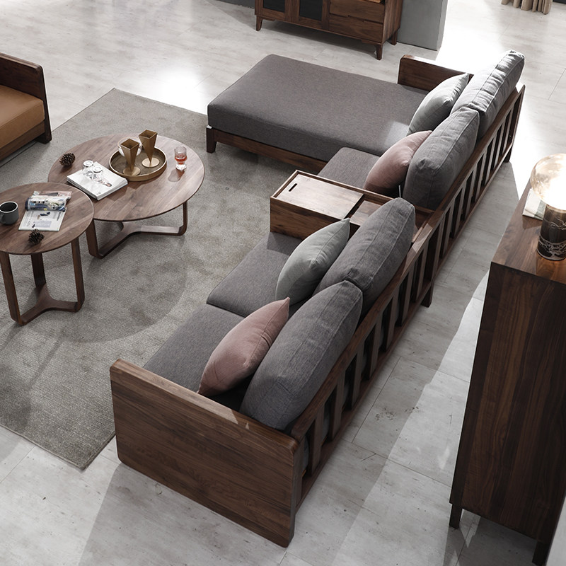 Nordic solid wood sofa black walnut modern three-person sofa living room new Chinese style fabric leather combination sofa