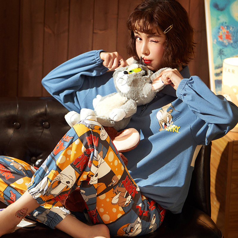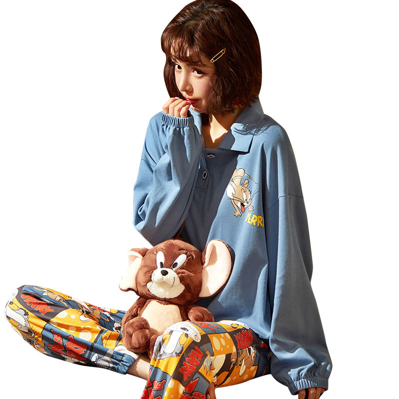 Net Red Pyjamas Woman Spring Autumn Long Sleeves Slim pure cotton Winter Burst Suit Lady Full Cotton Extractable Dress for the summer