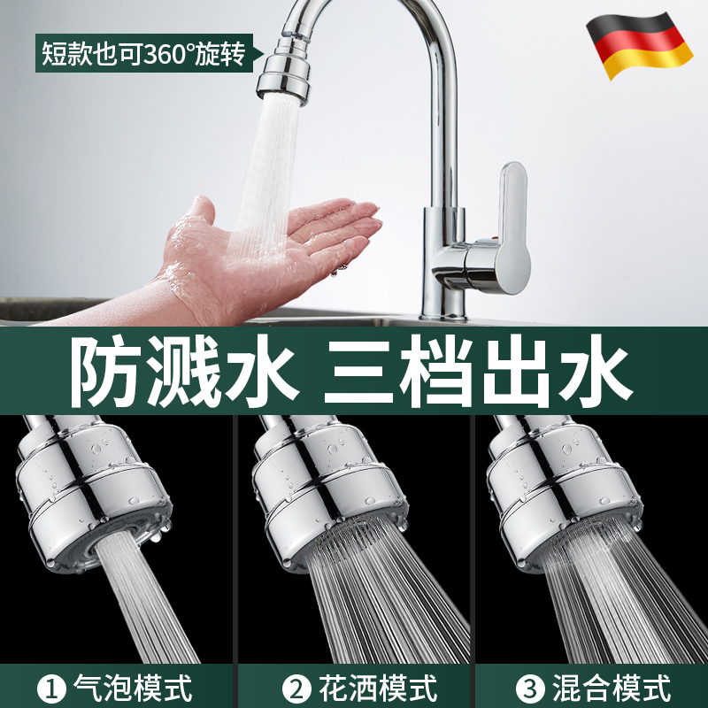 Three-speed splash-proof ● 360 degree rotation wash (all copper extended version