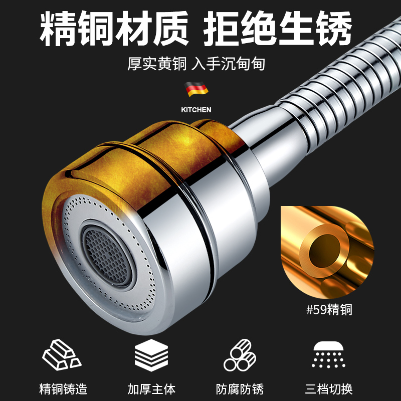 Full copper faucet extender pressurized shower splash-proof head kitchen extension mouth universal extender sprinkler water artifact