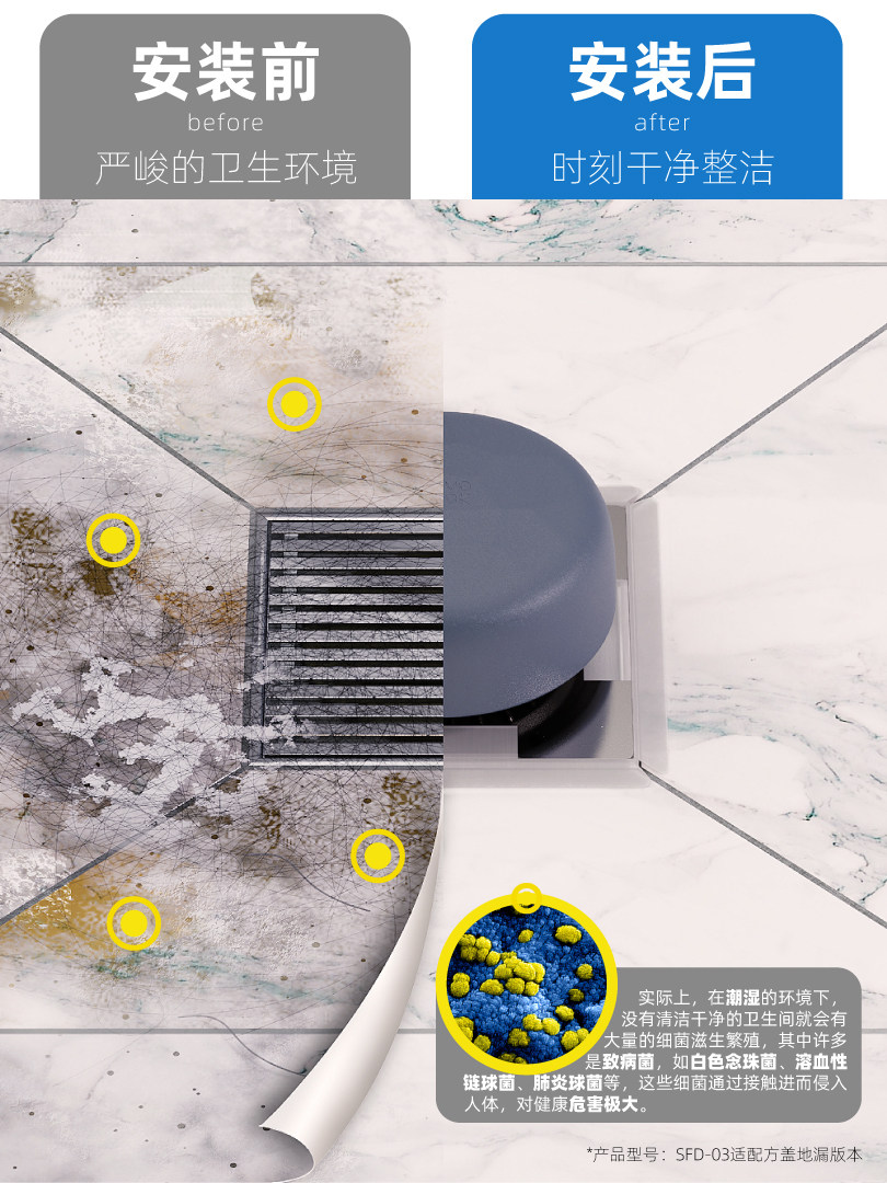 Three generations floor drain (square cover 80-97mm) SFD-03 tri-generation floor drain (round cover 78-94mm) SFD-0375mm-90mm SFD-02
