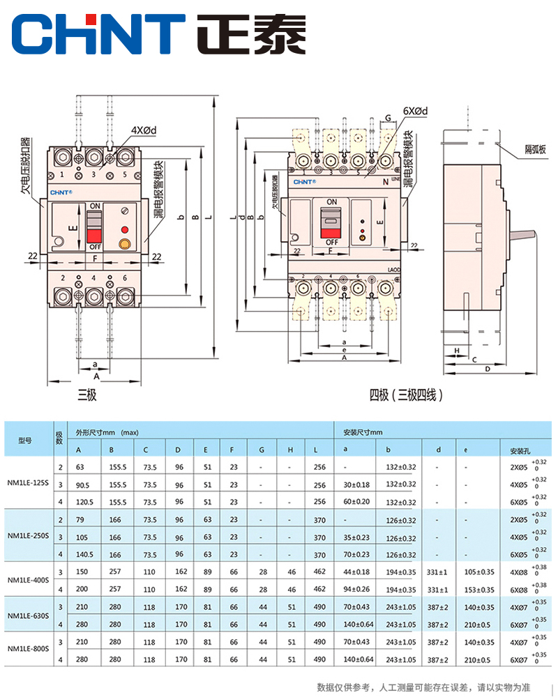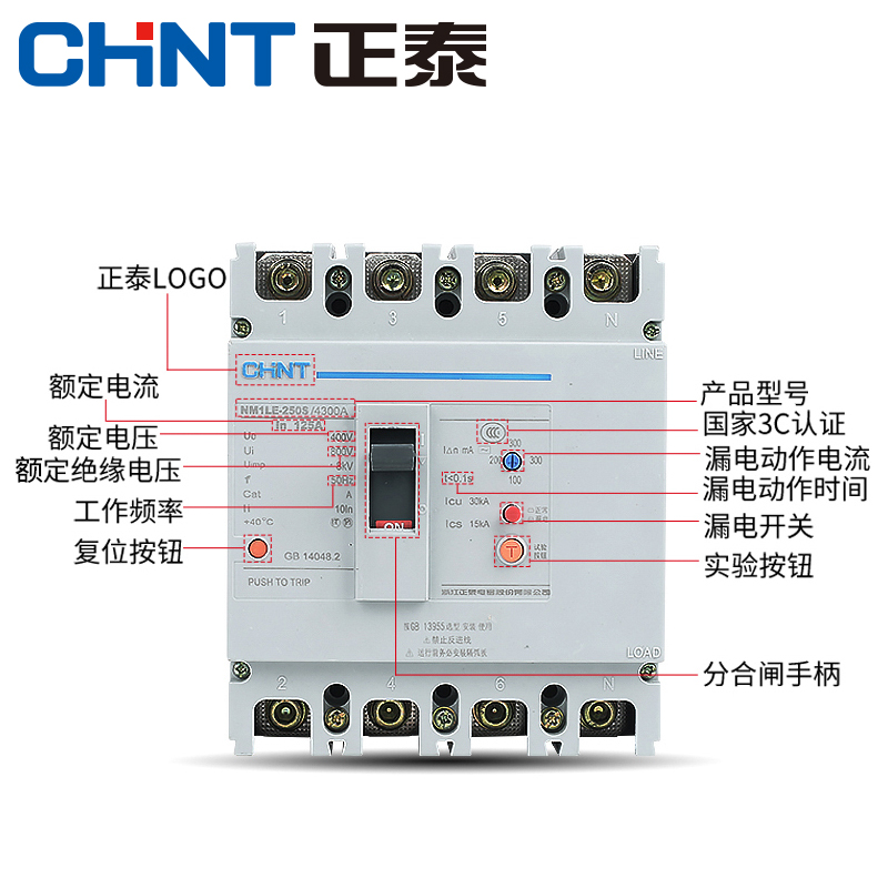 Positive Tai plastic shell leakage circuit breaker NM1LE-125 250 4300A 225A three-phase four-wire open protector