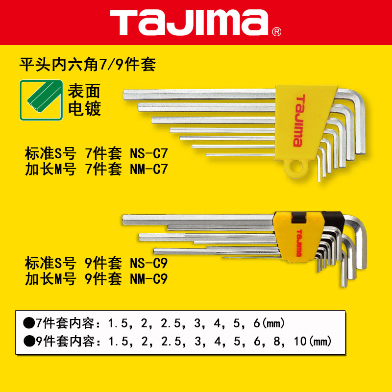 tajima japan field island public-made inner hexagonal flat head wrench group suit gat long mirror sandblasted S2 alloy steel
