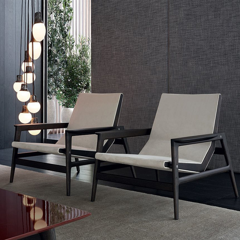 Italian Extreme Simple Man Real Wood Casual Leather Chair Nordic Minimalist Modern Bedroom Sloth Lying Chair Book Room-like room chair