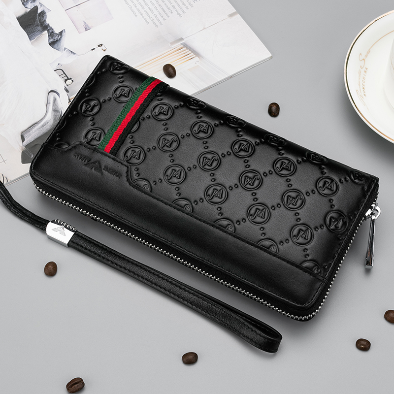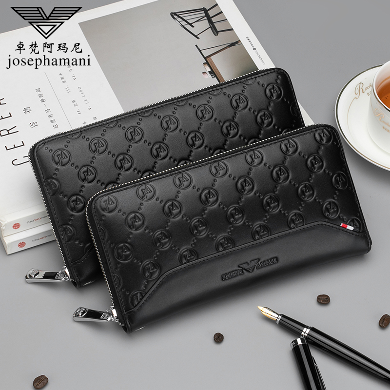 Zhuvan Yamanini handbag man genuine leather 2021 new hand held cow leather fashion casual pull chain long version wallet tide